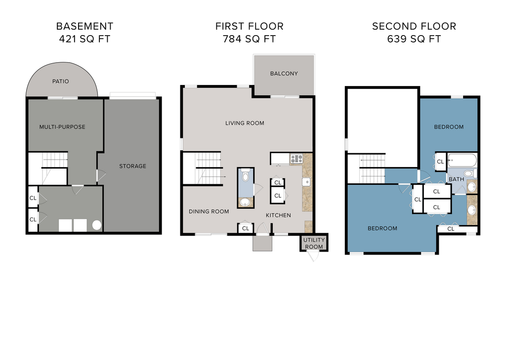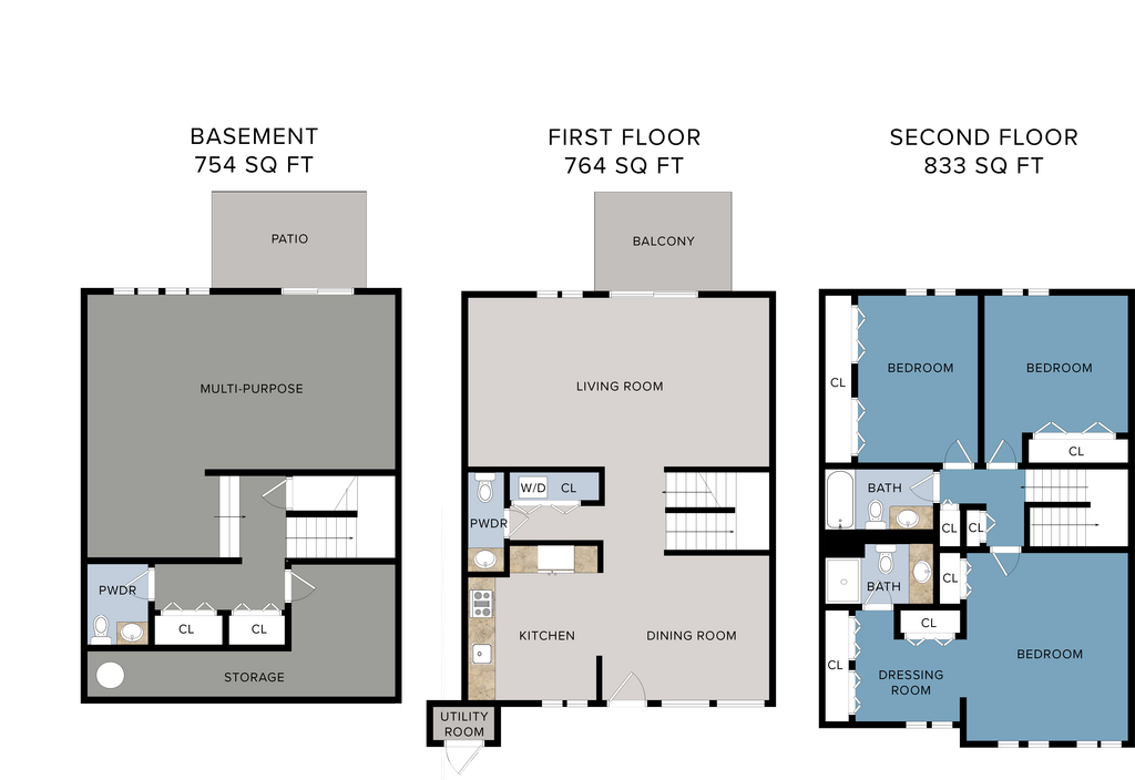 (S0C1) 2 x 2.5 Duplex - Floorplan 1 (S0C2) 2 x 2.5 Triplex