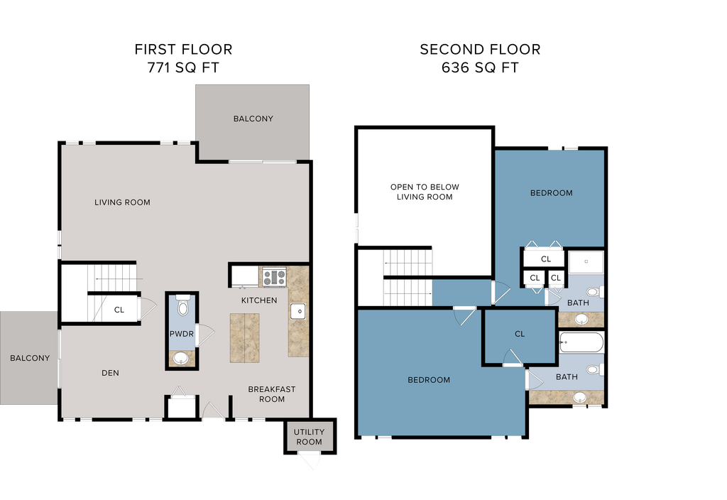 2 Beds, 2.5 Baths, 1426 sq ftModel Gallery