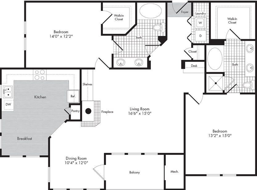 2 Beds, 2 Baths, 1488 sq ftAvailable January 1, 2026Model Gallery
