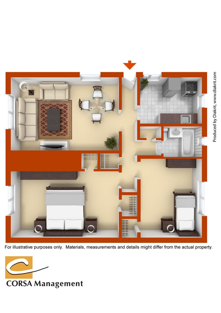 2 Beds, 1 Bath, 700-740 sq ftModel Gallery