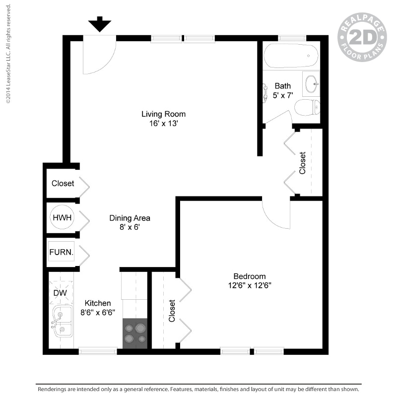 2 Beds, 1 Bath, 896 sq ftPlus FeesAvailable NowModel Gallery