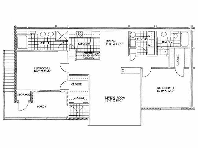 Apartment Model: 2 Bedroom Split$1,3452 Bedroom, 2 Bath, 1574 sq ftUnavailable![]()