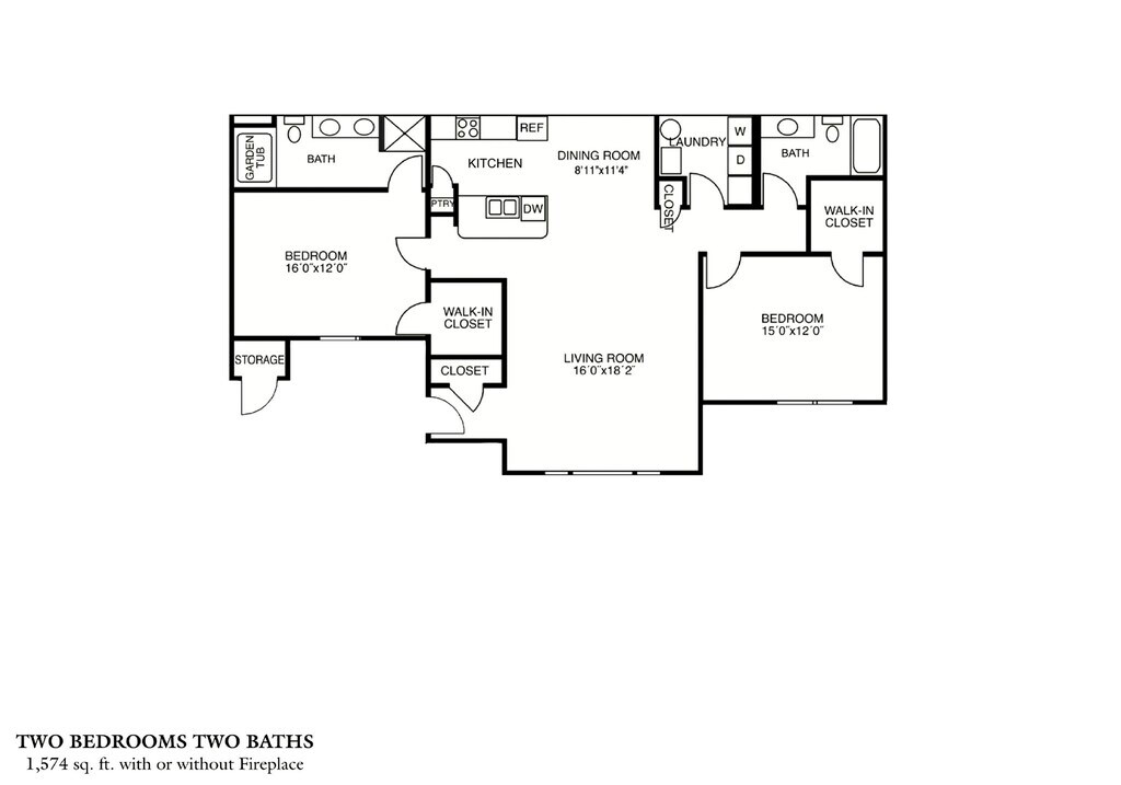 2 Beds, 2 Baths, 1574 sq ftLargest 2 BedroomThis is the largest 2 Bedroom at this PropertyModel Gallery