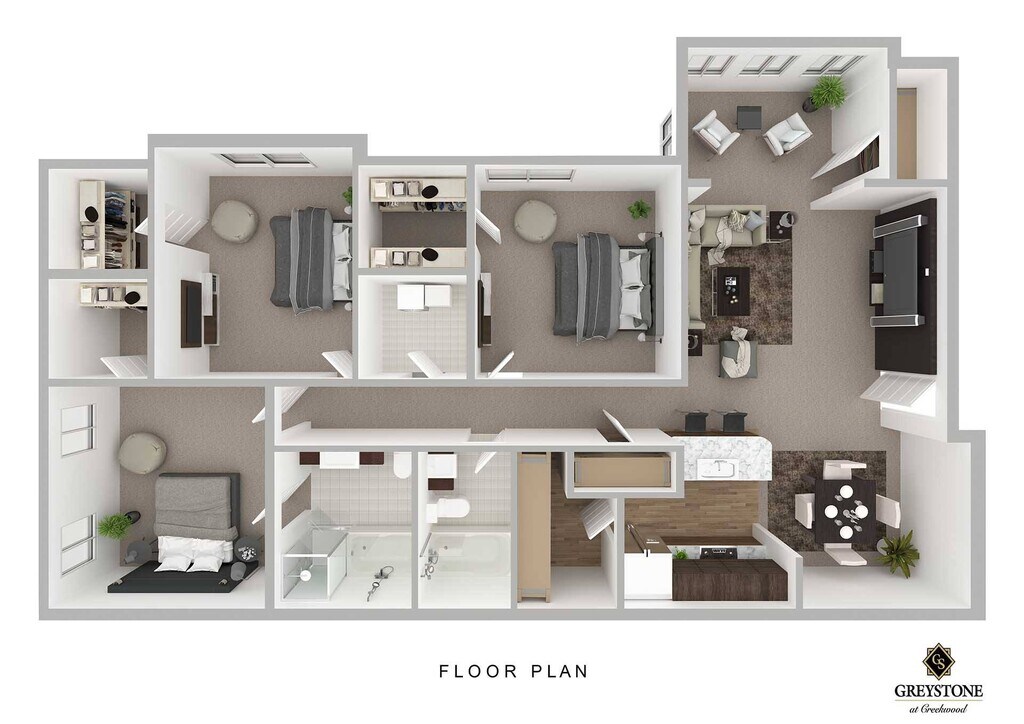 Greystone at Creekwood offers 1 to 3 Bedroom apartments having 686–1,588 sqft. Here is the current pricing and availability: