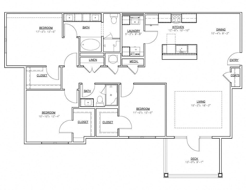C1A - Floorplan 1 Three Bedroom with a Deck/Patio