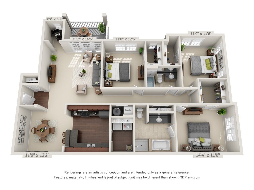 Apartment Model: C1ACall For Rates3 Bedroom, 2 Bath, 1624 sq ftUnavailable![]()