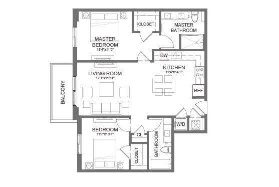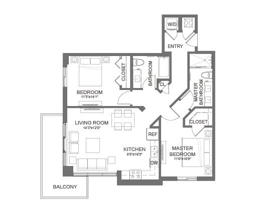 1 Bed, 1 Bath, 722 sq ftAvailable NowModel Gallery