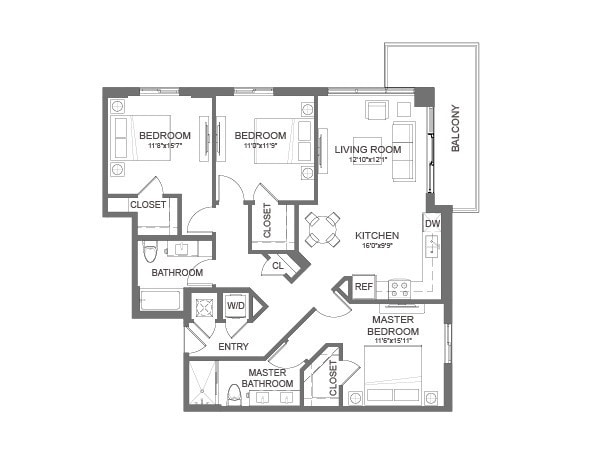 Apartment Model: A1BFrom $2,2951 Bedroom, 1 Bath, 722 sq ftAvailable Now![]()