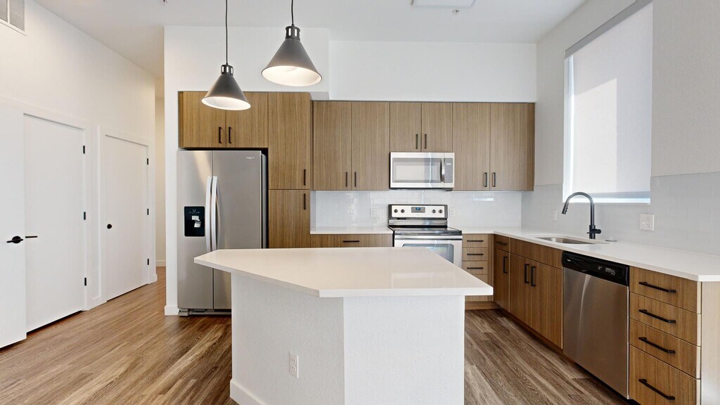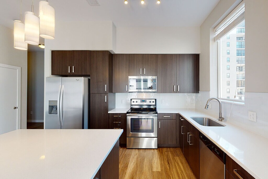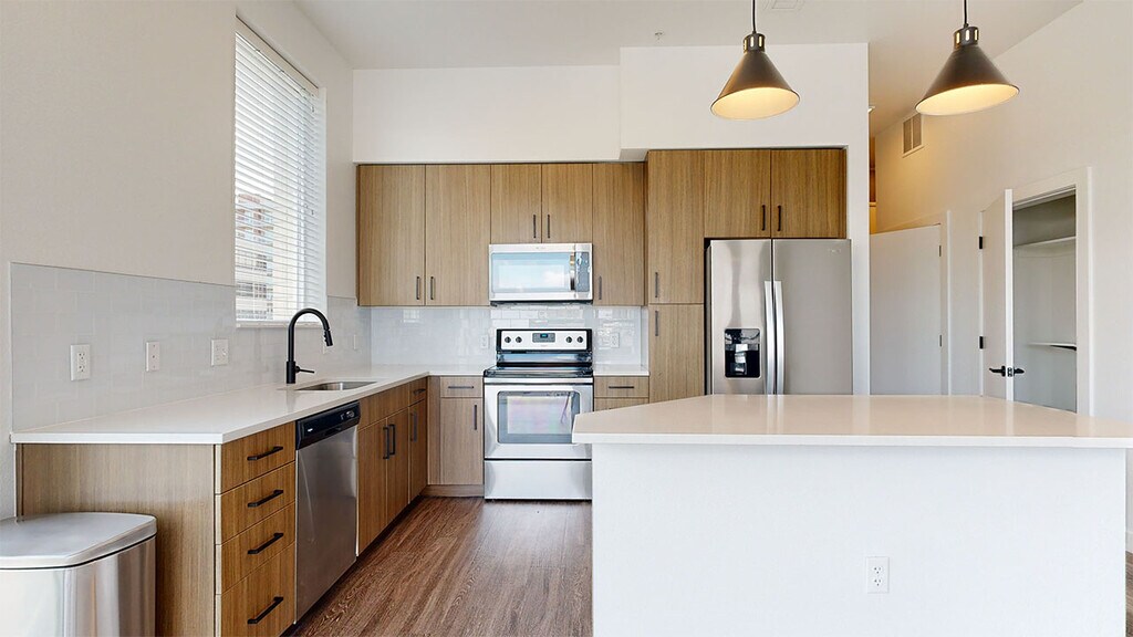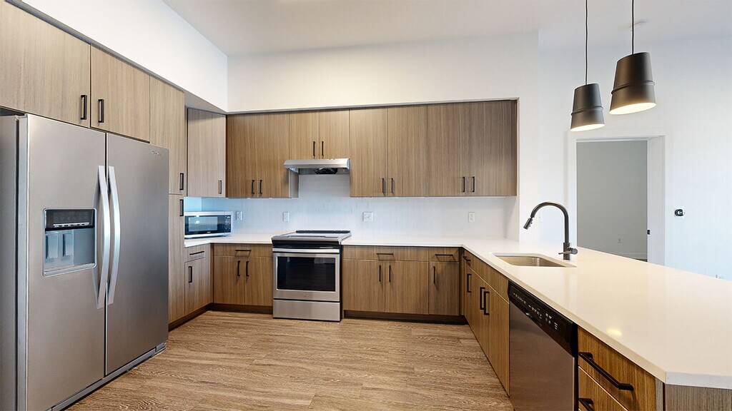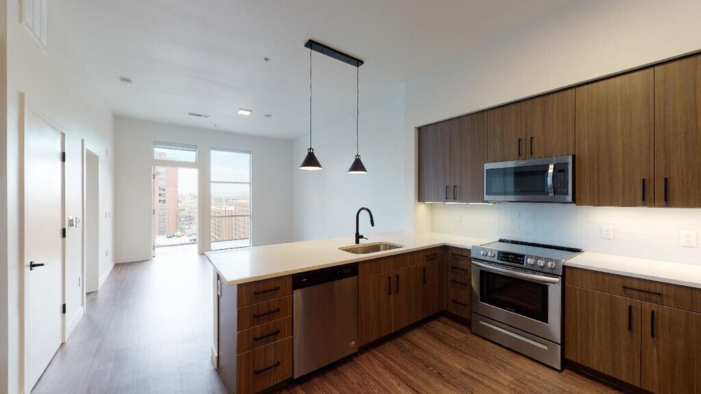 Griffis Cherry Creek North offers pet-friendly apartments with studio, one and two-bedroom floor plan options. Each apartment includes an in-home washer and dryer, air conditioning, dishwasher, quartz countertops, wood-style flooring, and a patio or balcony. Residents can enjoy modern, luxury amenities such as a resort-style pool with a sundeck, cabanas, and a hot tub. The community is ideally located off Cook Street, providing easy access to local attractions and amenities. Just minutes away, you'll find the Cherry Creek Shopping Center, Denver Country Club, University of Denver, and the scenic Cherry Creek Trail, making it an ideal location for both leisure and convenience. Additionally, the proximity to Gates Tennis Center, Cherry Creek Art Gallery, North Italia, and the Denver Botanic Gardens ensures that residents have a variety of entertainment and dining options nearby. Schedule your tour today to discover all that Griffis Cherry Creek North has to offer!