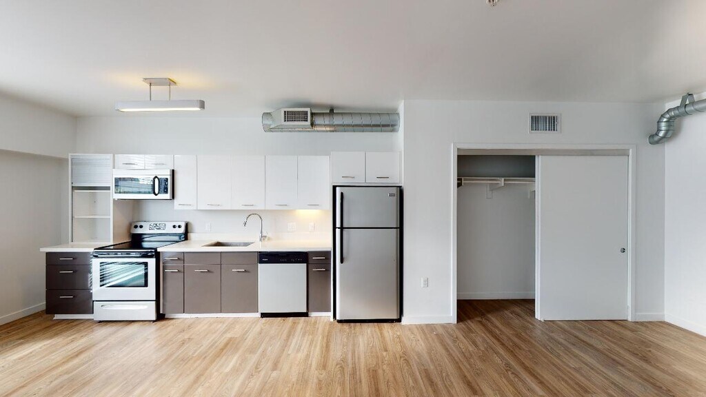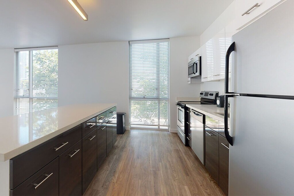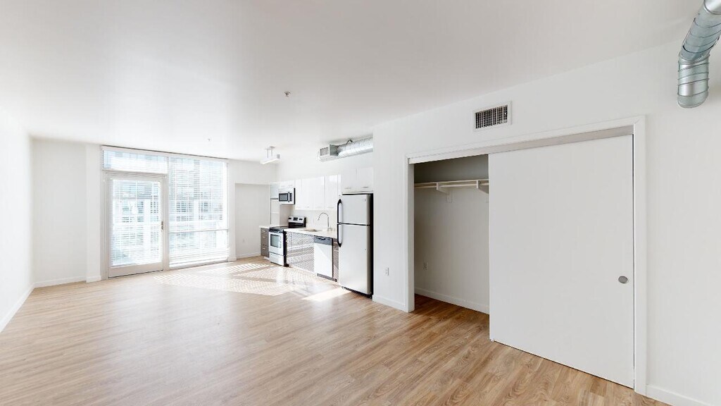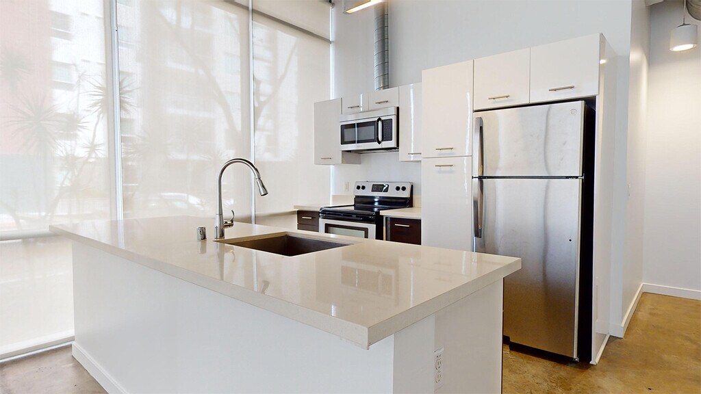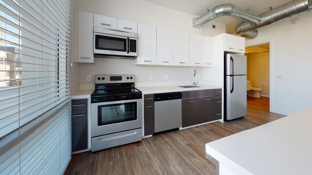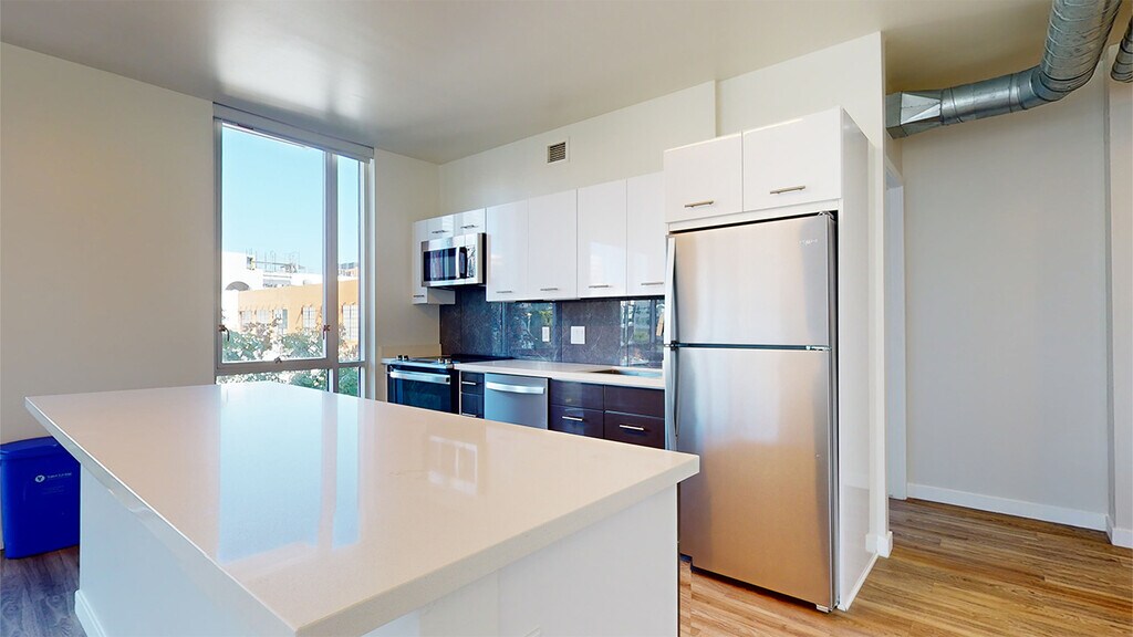 Griffis East Village offers a range of pet-friendly apartment options, including studio, one, and two-bedroom floor plans. Each apartment is equipped with an in-home washer and dryer, dishwasher, air conditioning, and modern quartz countertops. Amenities include access to a 24-hour fitness center as well as an expansive rooftop deck that offers breathtaking views of San Diego. Residents also have entry to a controlled-access parking garage. This community is ideally located off 13th Street in the heart of San Diego near various shopping, dining, arts, entertainment, and recreational destinations. Notable nearby attractions include Balboa Park, Petco Park, the Gaslamp Quarter, Marina Park, and San Diego City College, ensuring you're never far from the action. Schedule a tour today to discover why Griffis East Village is the best of San Diego living!