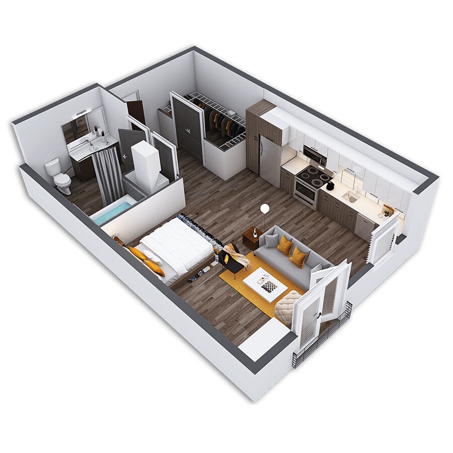 Studio, 1 Bath, 584-593 sq ftAvailable NowModel Gallery