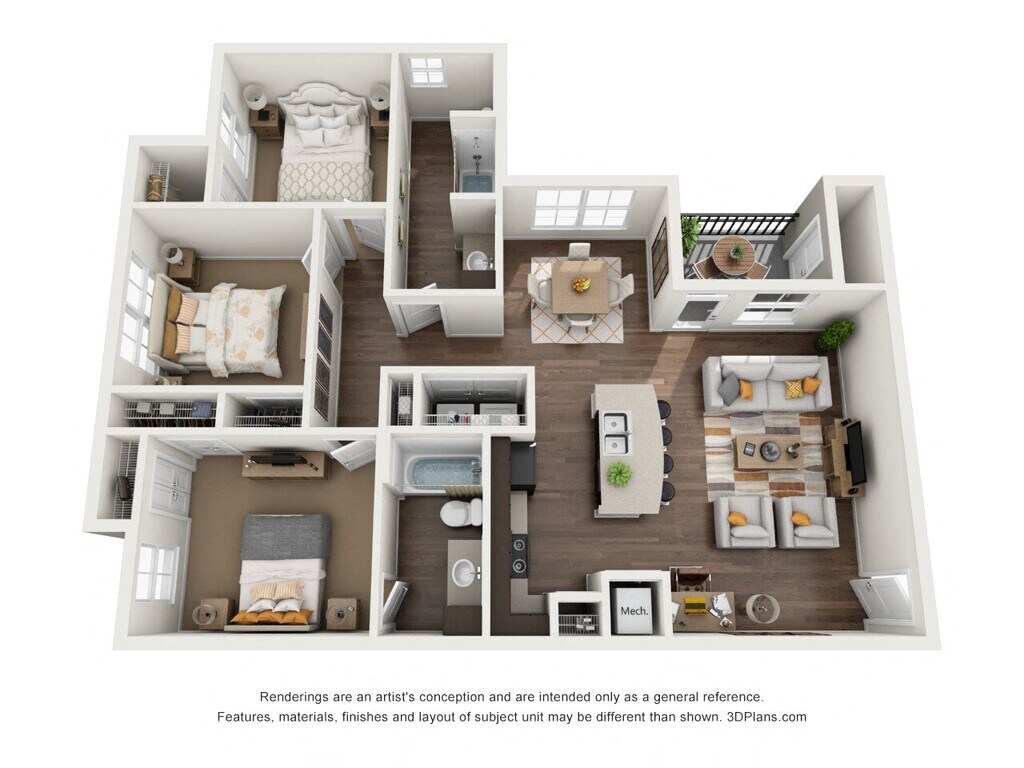 3 Beds, 2 Baths, 1206 sq ftModel Gallery