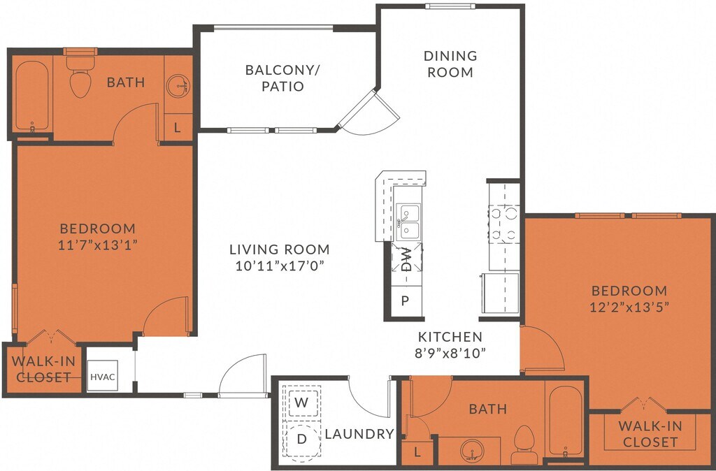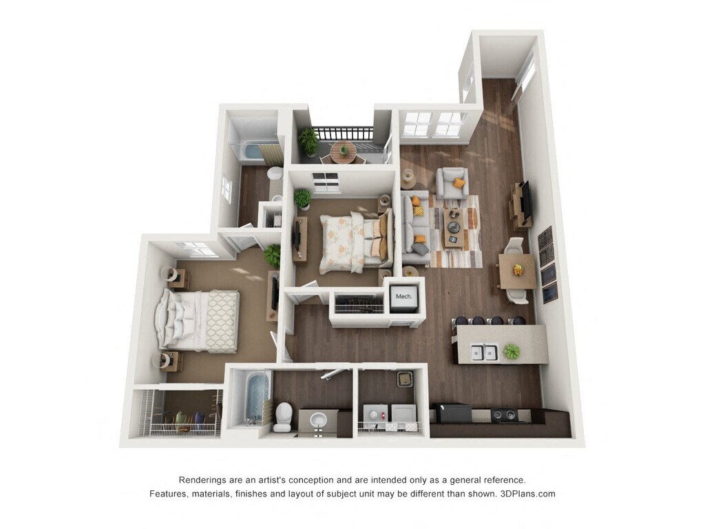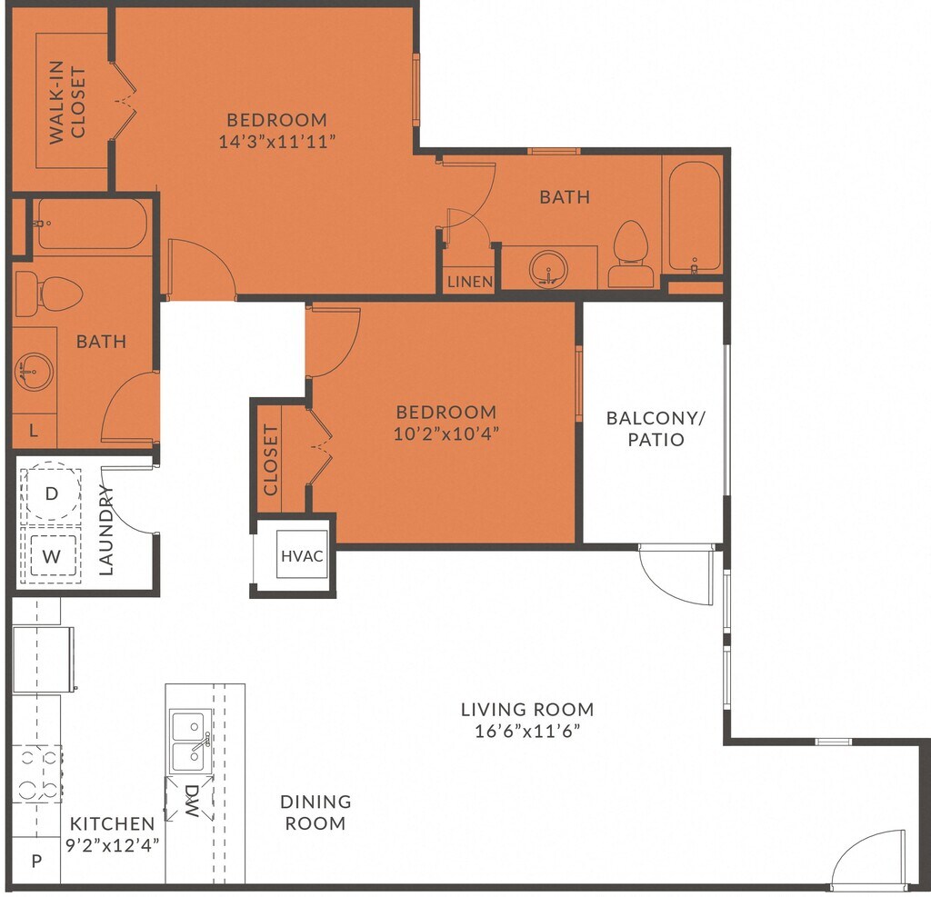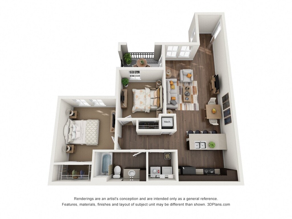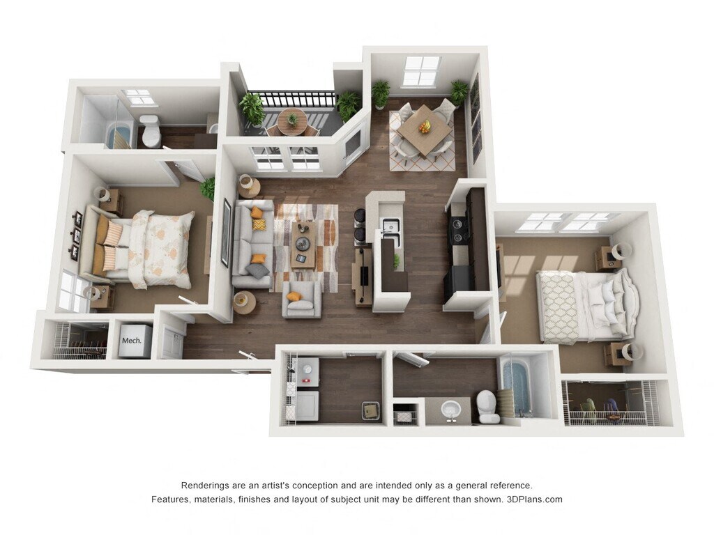 2 Beds, 2 Baths, 1044 sq ftLargest 2 BedroomThis is the largest 2 Bedroom at this PropertyModel Gallery