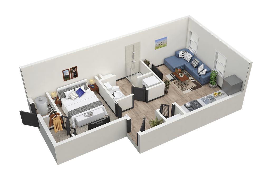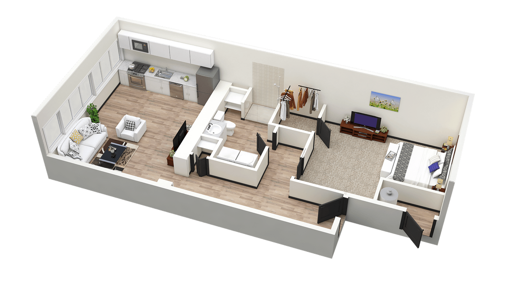 1 Bed, 1 Bath, 450 sq ftModel Gallery