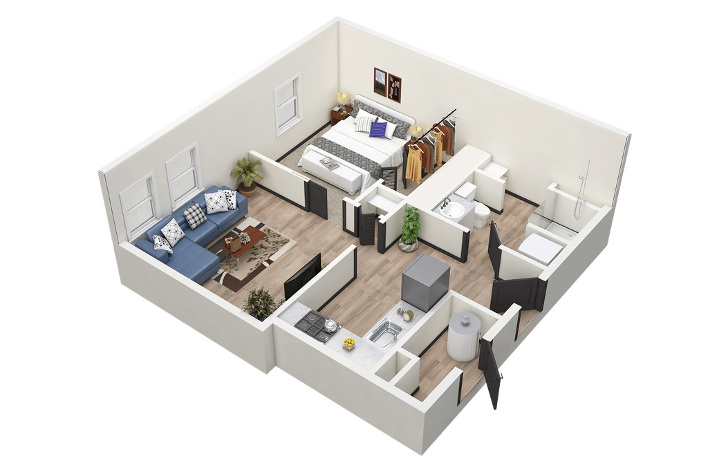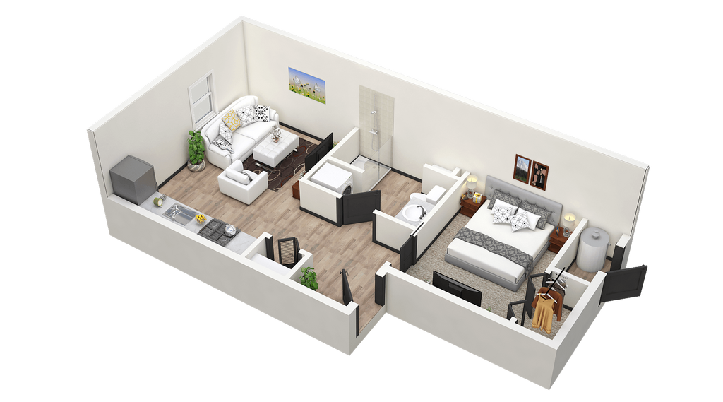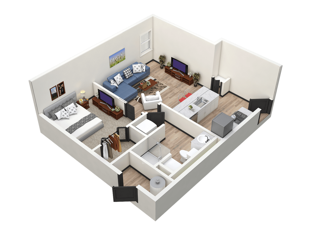 1 Bed, 1 Bath, 475 sq ftModel Gallery
