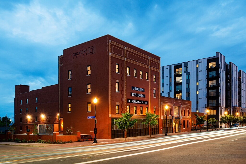 Grocers Ice Lofts is located at 609 E Main St near the Butchertown area of Louisville, KY
