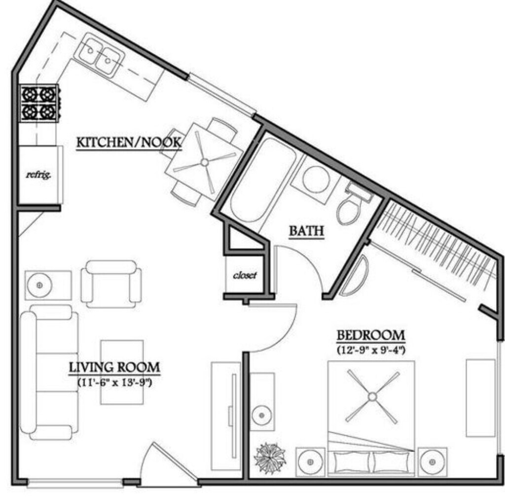 Apartment Model: 1x11 Bedroom, 1 Bath, 600 sq ftAvailable NowFloorplansPhotos![]()