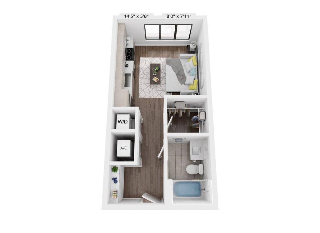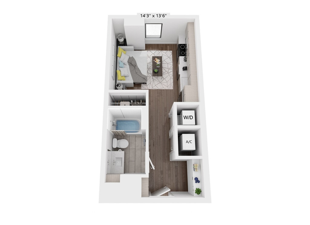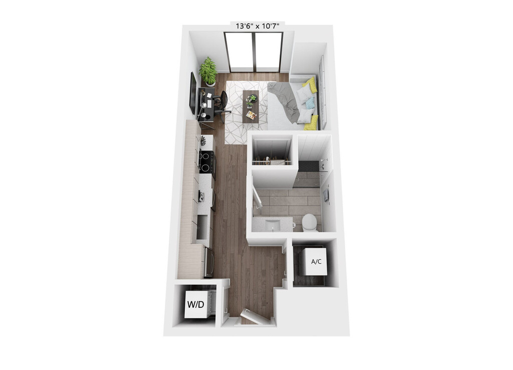 Apartment Model: ST1-WHUFrom $2,011Studio, 1 Bath, 408 sq ftAvailable NowFloor plans are artist's rendering. All dimensions are approximate. Actual product and specifications may vary in dimension or detail. Not all features are available in every rental home. Prices and availability are subject to change. Base rent is based on monthly frequency. Additional fees may apply, such as but not limited to package delivery, trash, water, amenities, etc. Deposits vary. Please see a representative for details.