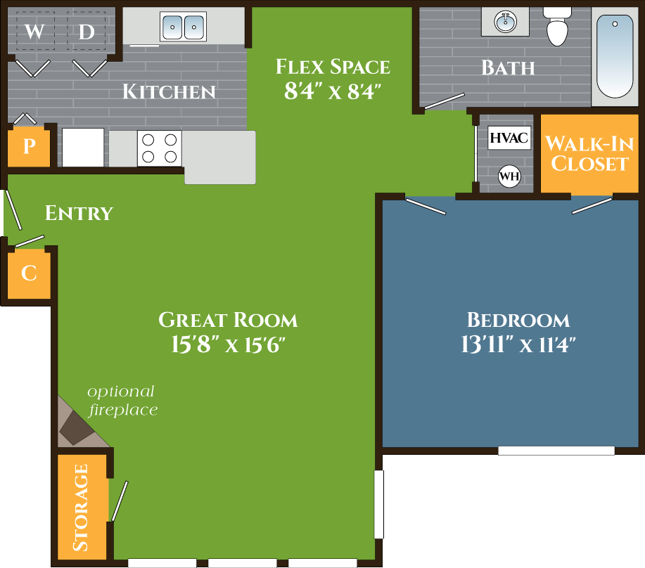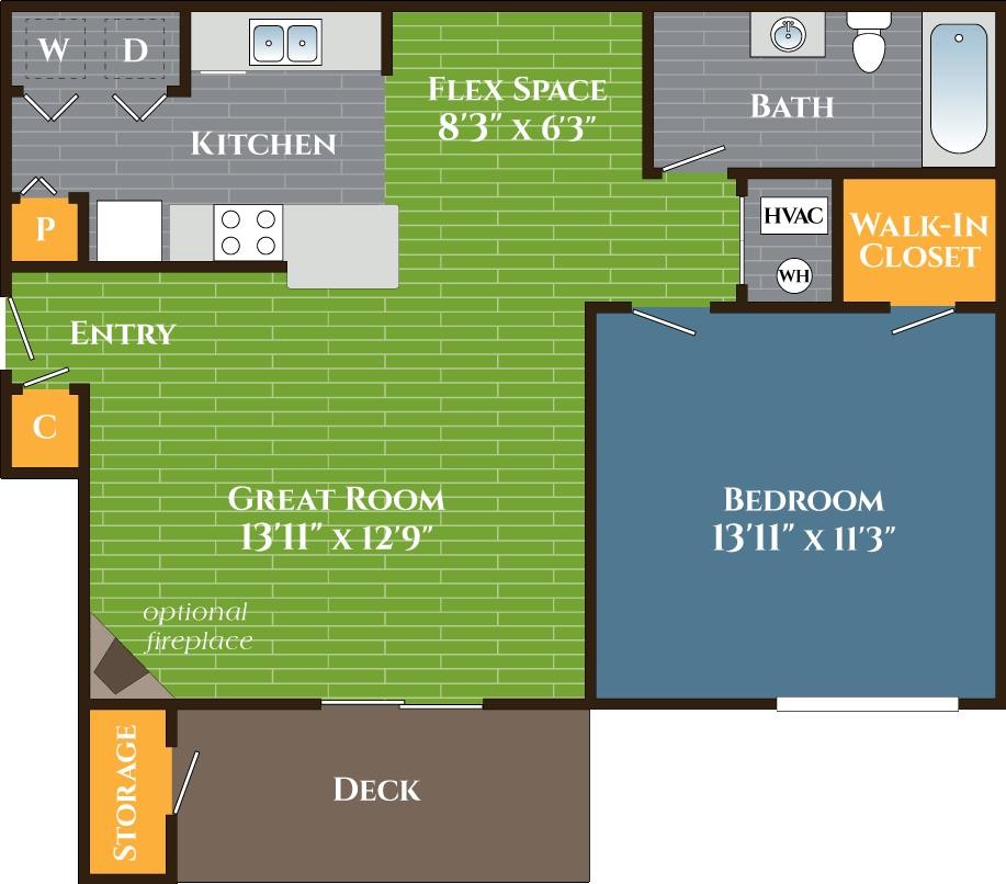 Studio, 1 Bath, 641 sq ftAvailable NowModel Gallery