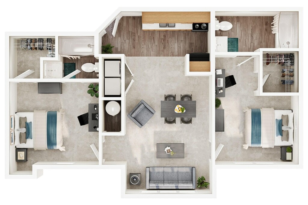 Apartment Model: 2BR/2BA$1,0802 Bedroom, 2 Bath, 850 sq ftAvailable Now![]()