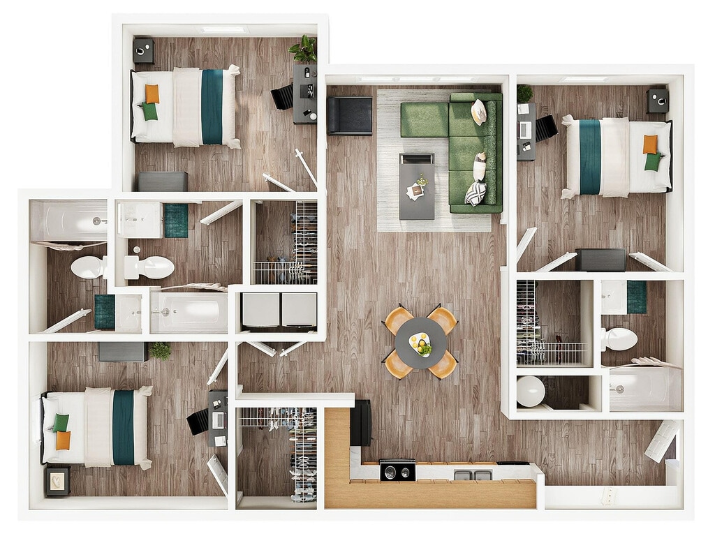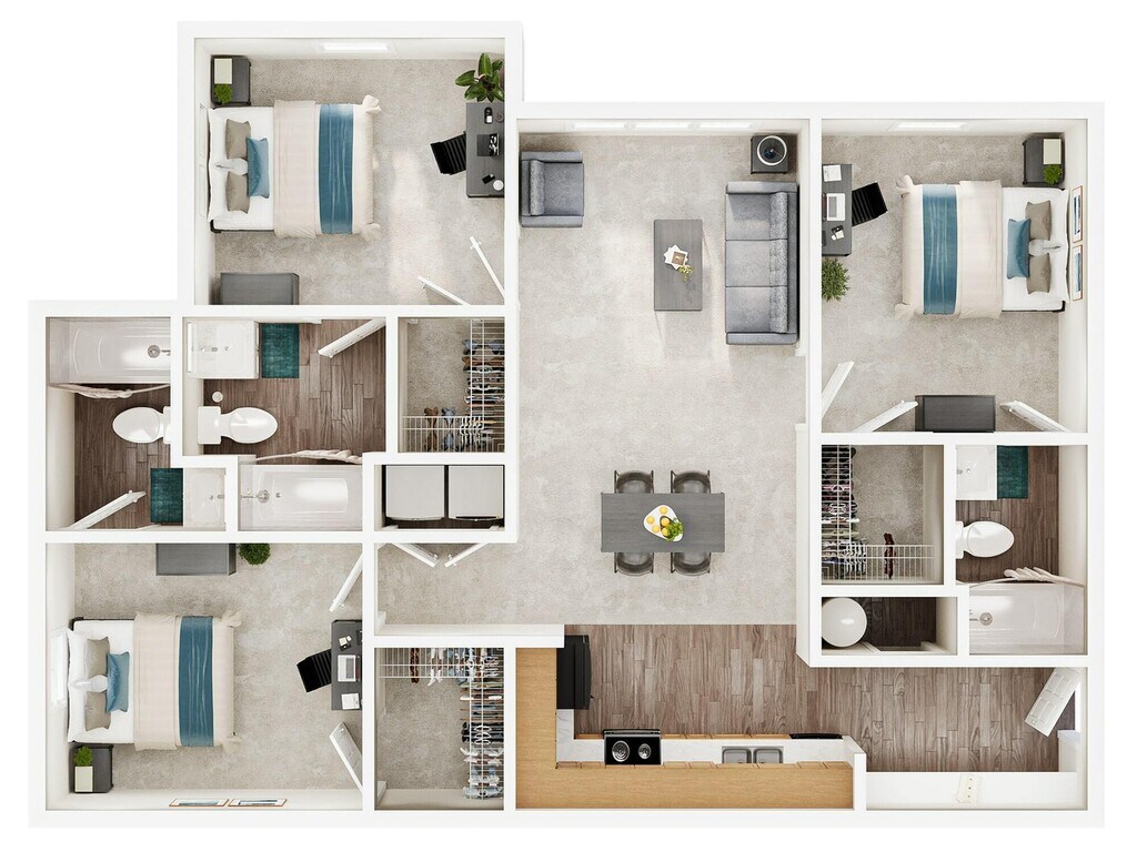 Apartment Model: 3BR/3BA - Upgraded$1,1253 Bedroom, 3 Bath, 1200 sq ftAvailable Now![]()