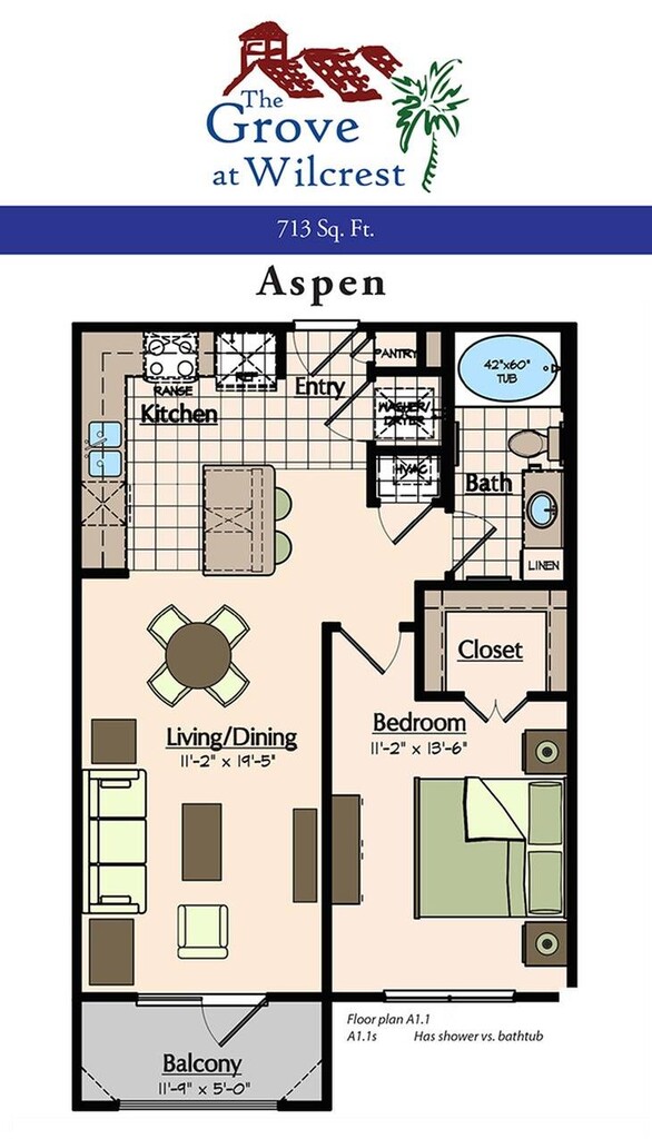 Apartment Model: A1From $1,3361 Bedroom, 1 Bath, 713 sq ftAvailable NowFloor plans are artist's rendering. All dimensions are approximate. Actual product and specifications may vary in dimension or detail. Not all features are available in every rental home. Prices and availability are subject to change. Base rent is based on monthly frequency. Additional fees may apply, such as but not limited to package delivery, trash, water, amenities, etc. Deposits vary. Please see a representative for details.