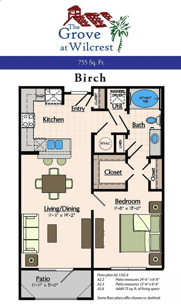- A1, A2, A3 floor plans will have options of either soaking tub or oversized glass walk in shower. A4