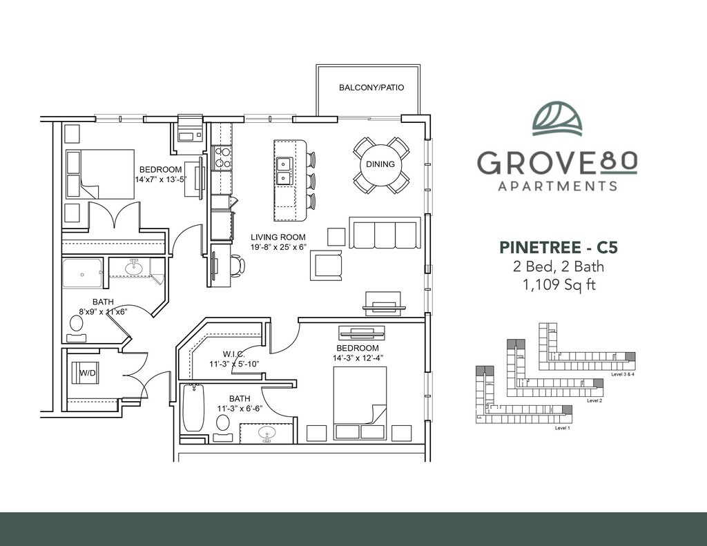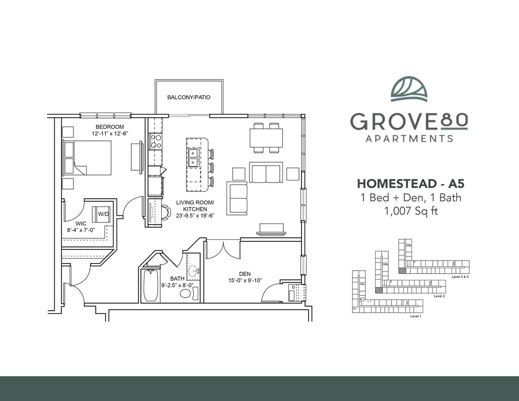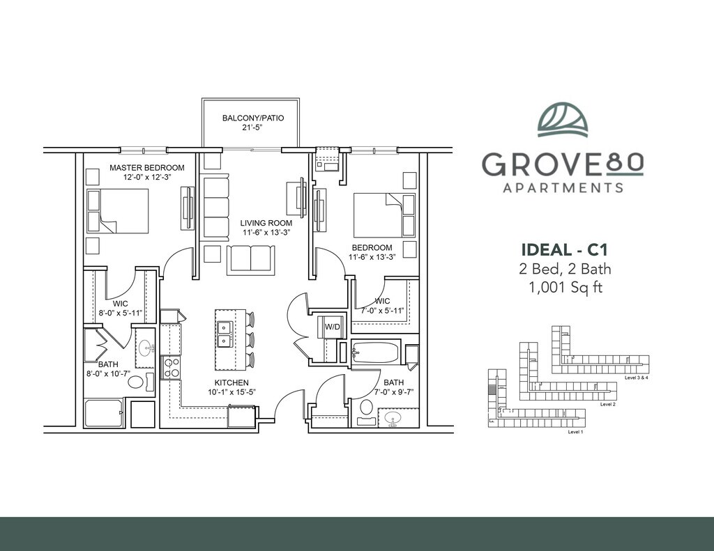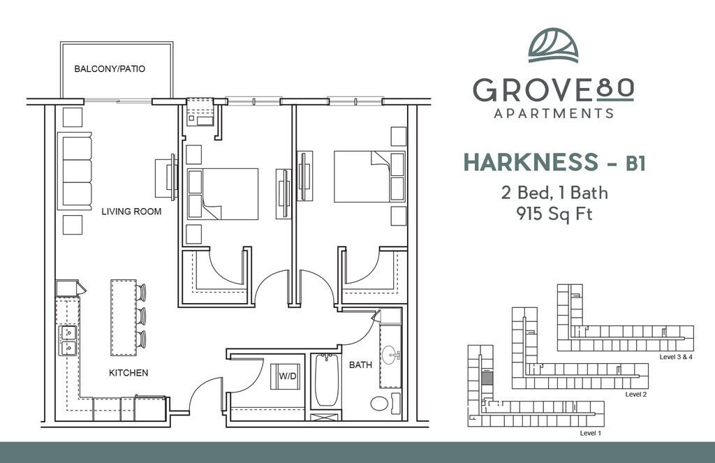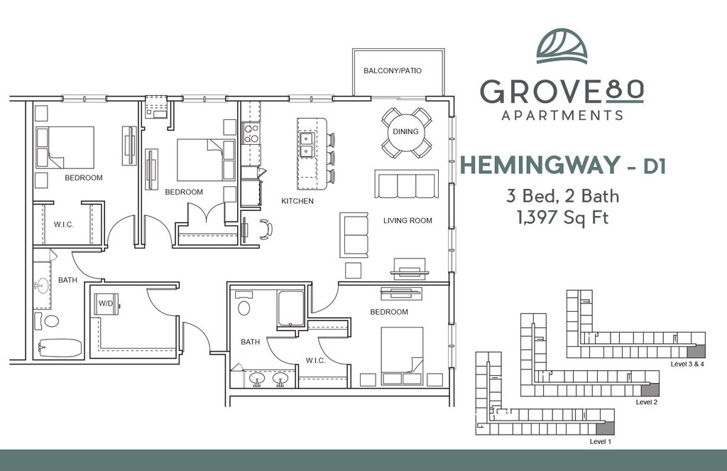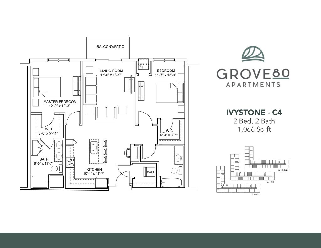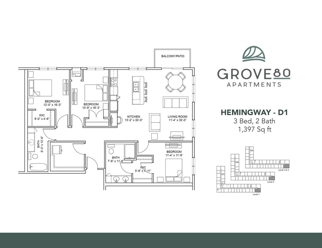 Grove80 Apartments offers Studio to 3 Bedroom apartments starting from $1,500 and having 570–1,397 sq ft. Here is the current pricing and availability:
