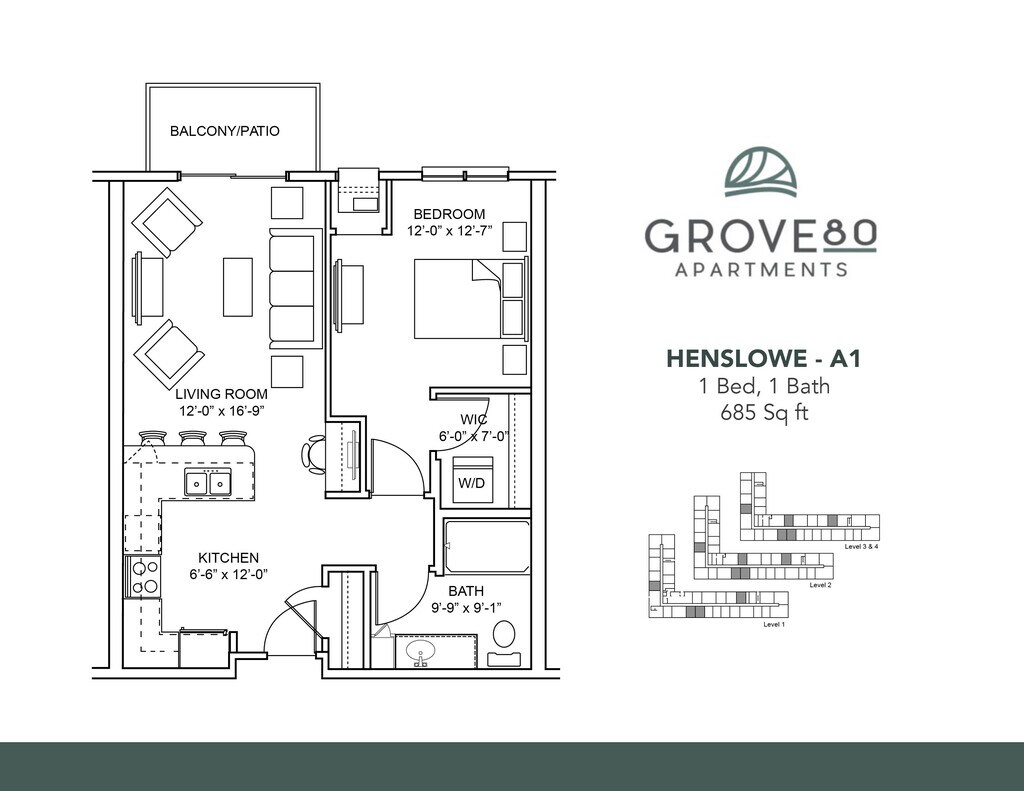 Apartment Model: Henslowe - A1$1,5001 Bedroom, 1 Bath, 685 sq ftAvailable December 10, 2025![]()