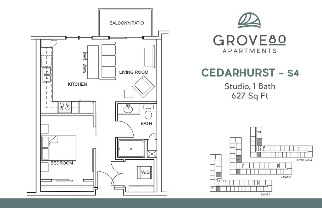 Apartment Model: Cedarhurst - S4Call For RatesStudio, 1 Bath, 627 sq ftUnavailable![]()
