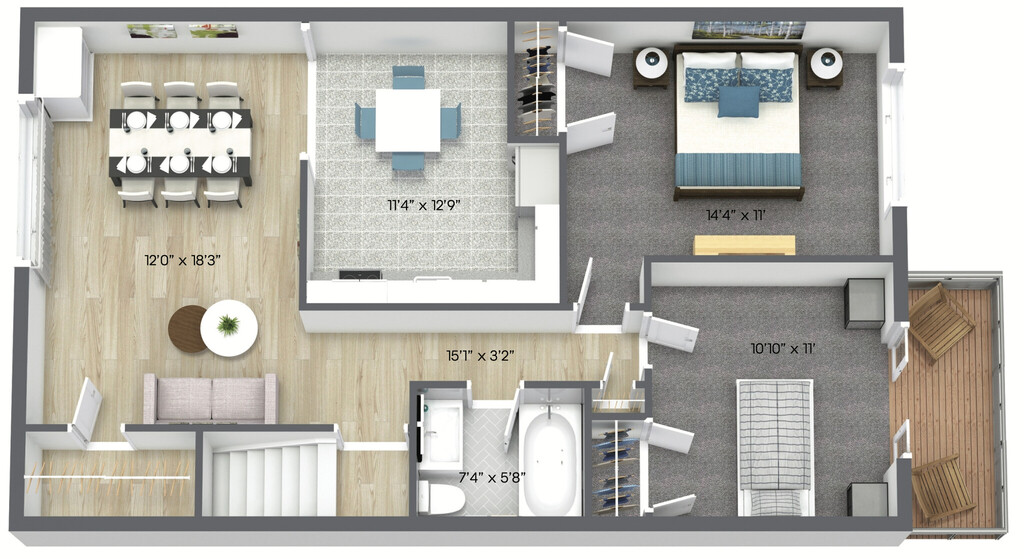 1 Bed, 1 Bath - Floorplan 9 2 Bedrooms