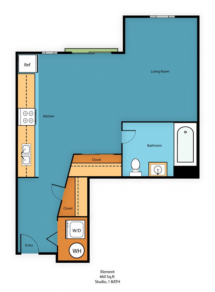 Studio - Floorplan 10 Apartment Unit: A_A104Apartment Model: Studio$1,425Studio, 1 Bath, 460 sq ftAvailable Now![]()