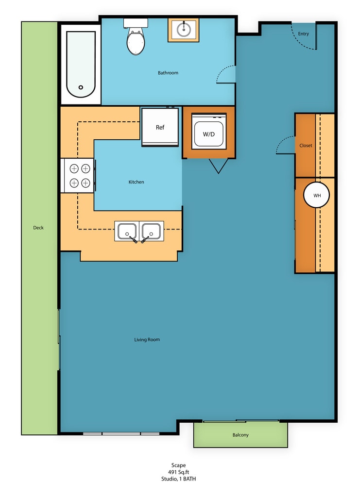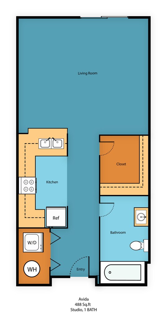 Studio, 1 Bath, 450 sq ftAvailable NowModel Gallery