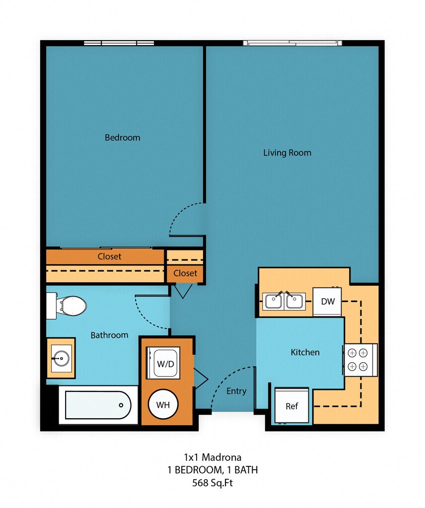 One Bedroom One Bath - Floorplan 10 Apartment Unit: A_A106Apartment Model: One Bedroom One Bath$1,5751 Bedroom, 1 Bath, 568 sq ftAvailable Now![]()