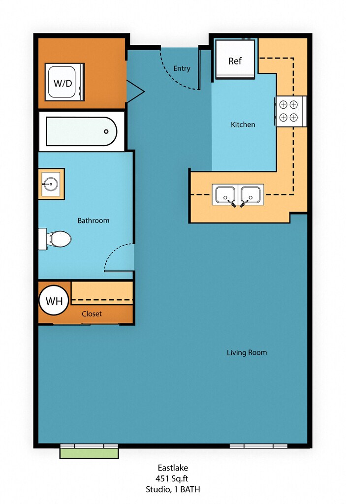 Studio, 1 Bath, 450 sq ftAvailable January 15, 2026Model Gallery