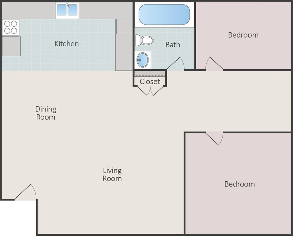 2 Beds, 1 Bath, 900 sq ftModel Gallery