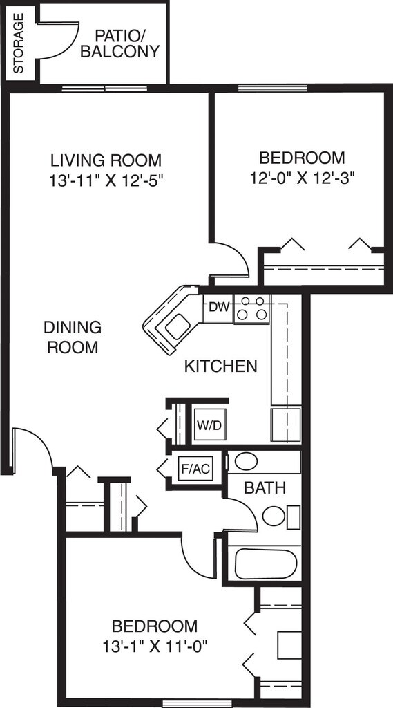 One Bedroom Traditional - GR - Floorplan 5 ![]()