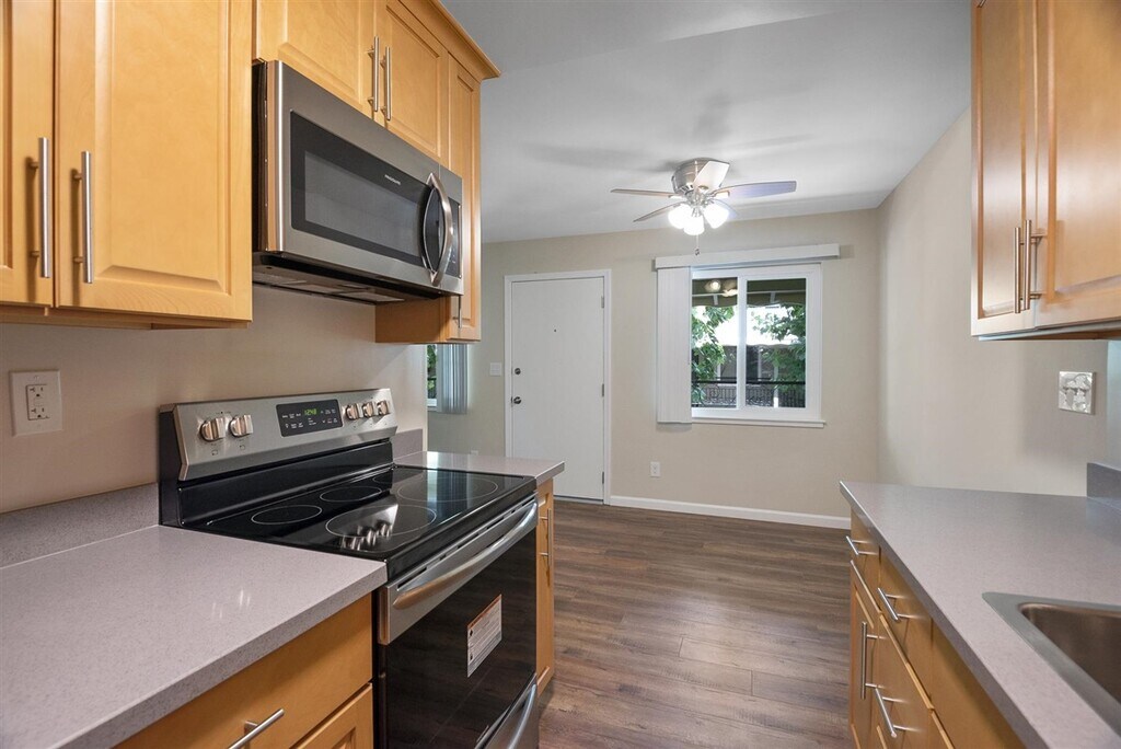 Studio Kitchen, all: appliances - electric range, refrigerator, built in microwave with exhaust fan, white/maple shaker cabinets with crown molding that extend to ceiling. quartz counters, stainless steel sink with pull-out sprayer, LED lighting Bathroom, all: 4 foot wide walk-in shower, toilet, pedestal sink, medicine cabinet with vanity lighting, extra large built-in cabinet above toilet, tile floors, exhaust fan with LED lighting Please view our 3D walk through with schematic floor plan and measurement tools. Cut/paste/copy the following URL into your browser. https://hd.pics/116547 All: Mirrored glass sliding closet doors Overhead ceiling fan/light All throughout the apartment: Laminate wood floors all throughout apartment (except bathroom) Double paned, low-E windows Barn door with stainless steel hardware leads to bathroom Upgraded (to code) electrical throughout, with 3-pronged grounded electrical outlets Vertical blinds Smooth wall plaster Paint Apartment comes with one covered carport parking Gas (heat source), garbage, and water are already included in rent Onsite laundry All New Speed Queen Washers & Dryers Pool, new furniture and BBQ Indoor cat OK- with additional cat deposit $500 Security deposit $1000 Easy access to Freeways 101, 880, 280 FIVE minute drive to San Jose International Airport Walking distance to Santa Clara University & shopping Location is exactly on San Jose/Santa Clara border Please reply to email or call (408) 247-1980 for open house hours or schedule an appointment. 2124 Park Avenue San Jose, CA 95126 One Bedroom 1 bedroom apartment upstairs. Please view our 3D walk through with schematic floor plan and measurement tools. Cut/paste/copy the following URL into your browser. https://hd.pics/116547 (Please note that photos may not be from the exact apartment available for rent. All apartments are the same size but the floor plan may be reversed. Kitchen cabinets and laminated wood flooring come in one of 2 options: light stained or dark stained.) Kitchen Stainless steel Frigidaire refrigerator Stainless steel Frigidaire smooth surface electric cooktop range Built-in stainless steel microwave/exhaust fan Stainless steel extra quite Samsung dishwasher Natural stained paneled cabinets with upper cabinets extended to ceiling Quartz counter tops Stainless steel sink with pull out sprayer LED lighting Adjacent area for dining table with overhead dimmable light and adjustable fan Bathroom Bathtub shower combo with sliding glass doors Sink vanity with cabinet below Toilet Lighting, overhead and vanity lighting Double hung operable opaque window for additional ventilation Ceramic tile floor Bedroom Mirrored sliding glass closet doors Additional linen closet with shelving Overhead dimmable light and adjustable fan Laminate wood floors all throughout apartment (except bathroom) Double paned, low-E windows Raised panel interior doors Upgraded (to code) electrical throughout, with 3-pronged grounded electrical outlets Vertical blinds Old world plaster walls Neutral paint color throughout Insulated throughout Apartment comes with one covered carport parking space Gas (heat source), garbage, and water included in rent Onsite laundry Pool, outdoor furniture and BBQs Well maintained building Mature landscaping Gardening and pool service 2X/week Quarterly pest control. Option to pay rent online Indoor cat deposit $500 Security deposit $1000 Easy access to Freeways 101, 880, 280 FIVE minute drive to San Jose International Airport Walking distance to Santa Clara University & Safeway Location is exactly on San Jose/Santa Clara border Must have good credit history Renters insurance required Please view our 3D walk through with schematic floor plan and measurement tools. Cut/paste/copy the following URL into your browser. https://hd.pics/116547 Jr One Bedroom 1 bedroom apartment. Please view our 3D walk through with schematic floor plan and measurement tools. Cut/paste/copy the following URL into your browser. https://hd.pics/116547 (Please note that photos may not be from the exact apartment available for rent. All apartments are the same size but the floor plan may be reversed. Kitchen cabinets and laminated wood flooring come in one of 2 options: light stained or dark stained.) Kitchen Stainless steel Frigidaire refrigerator Stainless steel Frigidaire smooth surface electric cooktop range Built-in stainless steel microwave/exhaust fan Stainless steel extra quite Samsung dishwasher Natural stained paneled cabinets with upper cabinets extended to ceiling Quartz counter tops Stainless steel sink with pull out sprayer LED lighting Adjacent area for dining table with overhead dimmable light and adjustable fan Bathroom Bathtub shower combo with sliding glass doors Sink vanity with cabinet below Toilet Lighting, overhead and vanity lighting Double hung operable opaque window for additional ventilation Ceramic tile floor Bedroom Mirrored sliding glass closet doors Additional linen closet with shelving Overhead dimmable light and adjustable fan Laminate wood floors all throughout apartment (except bathroom) Double paned, low-E windows Raised panel interior doors Upgraded (to code) electrical throughout, with 3-pronged grounded electrical outlets Vertical blinds Old world plaster walls Neutral paint color throughout Insulated throughout Apartment comes with one covered carport parking space Gas (heat source), garbage, and water included in rent Onsite laundry Pool, outdoor furniture and BBQs Well maintained building Mature landscaping Gardening and pool service 2X/week Quarterly pest control. Option to pay rent online Indoor cat deposit $500 Security deposit $1000 Easy access to Freeways 101, 880, 280 FIVE minute drive to San Jose International Airport Walking distance to Santa Clara University & Safeway Location is exactly on San Jose/Santa Clara border Must have good credit history Renters insurance required