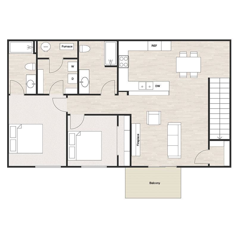 Apartment Model: Two Bedrooms Two Bathrooms Upper$1,3992 Bedroom, 2 Bath, 1144 sq ftUnavailable![]() - Two Bedrooms Two Bathrooms Upper - Floorplan 1