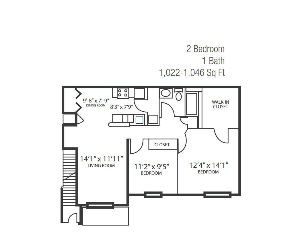 2 Beds, 1 Bath, 1022-1046 sq ftAvailable NowModel Gallery