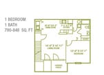 1 Bed, 1 Bath, 790-848 sq ftAvailable NowModel Gallery