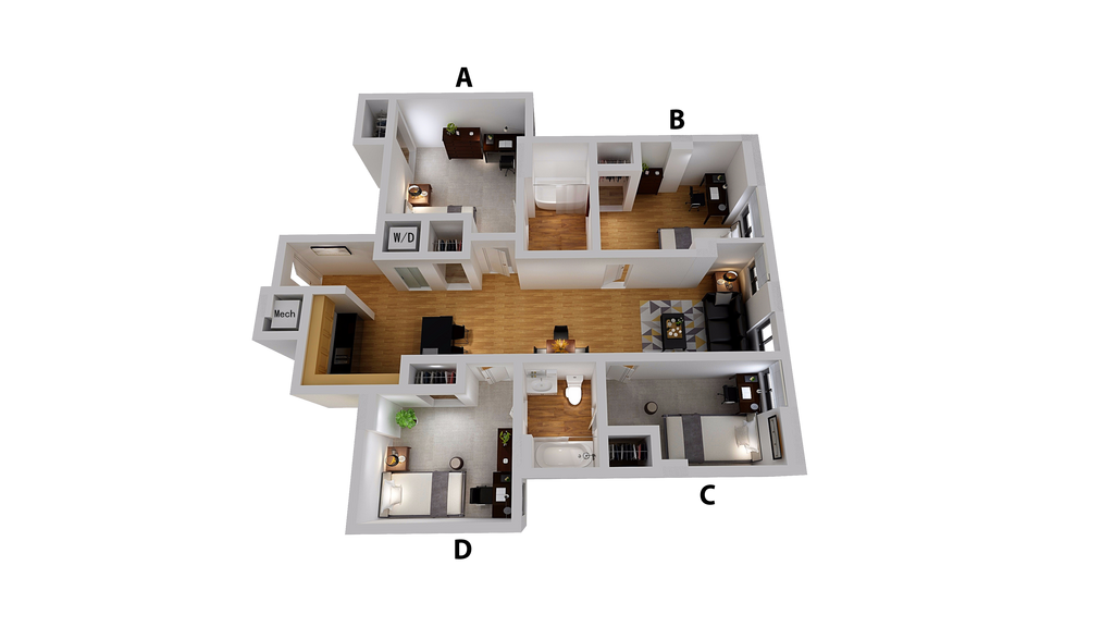 Apartment Model: 4 Bedroom / 2 Bathroom- per bedroom4 Bedroom, 2 Bath, 1086 sq ftUnavailable4 Bedroom / 2 Bathroom- per bedroom - Floorplan 1 4 Bedroom / 4 Bathroom- per bedroom