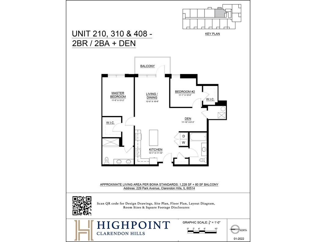 1 Bed 1 Bath + Den - Floorplan 1 1 Bed 2 Bath + Den