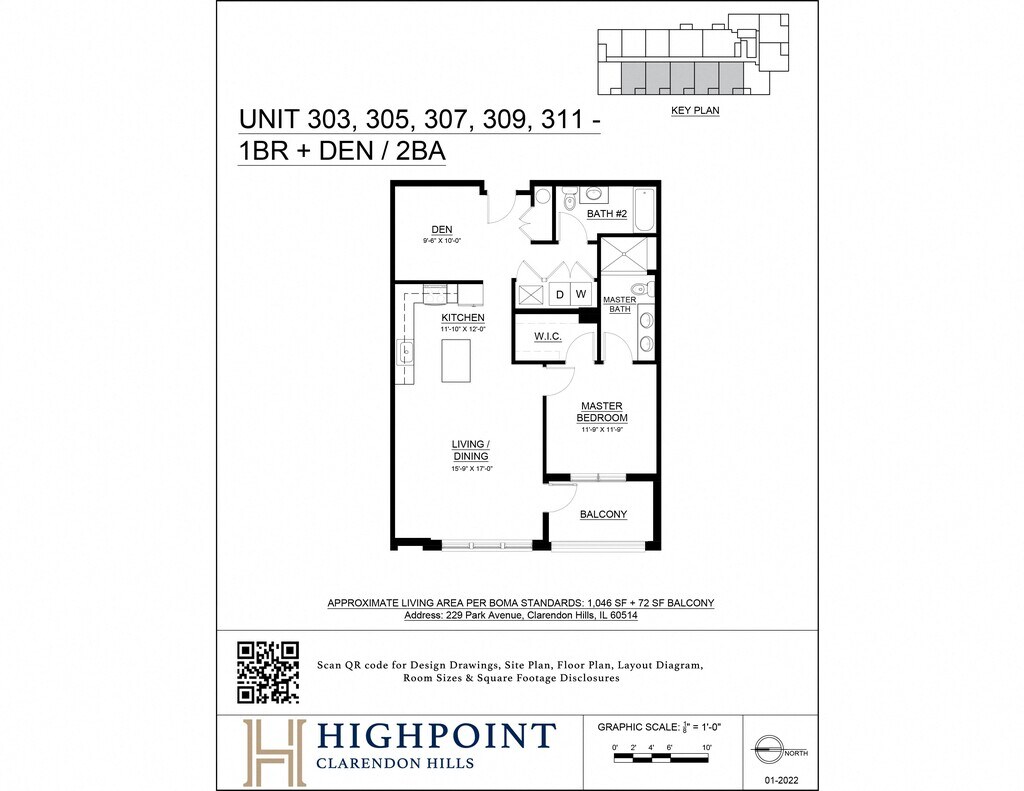 1 Bed 2 Bath + Den - Floorplan 2 Apartment Unit: 311Apartment Model: 1 Bed 2 Bath + Den1 Bedroom, 2 Bath, 1046 sq ftAvailable August 1, 2026![]()