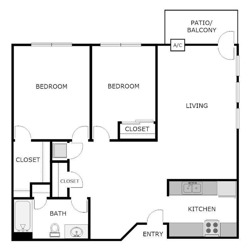 2 Bed 1 Bath - Floorplan 2