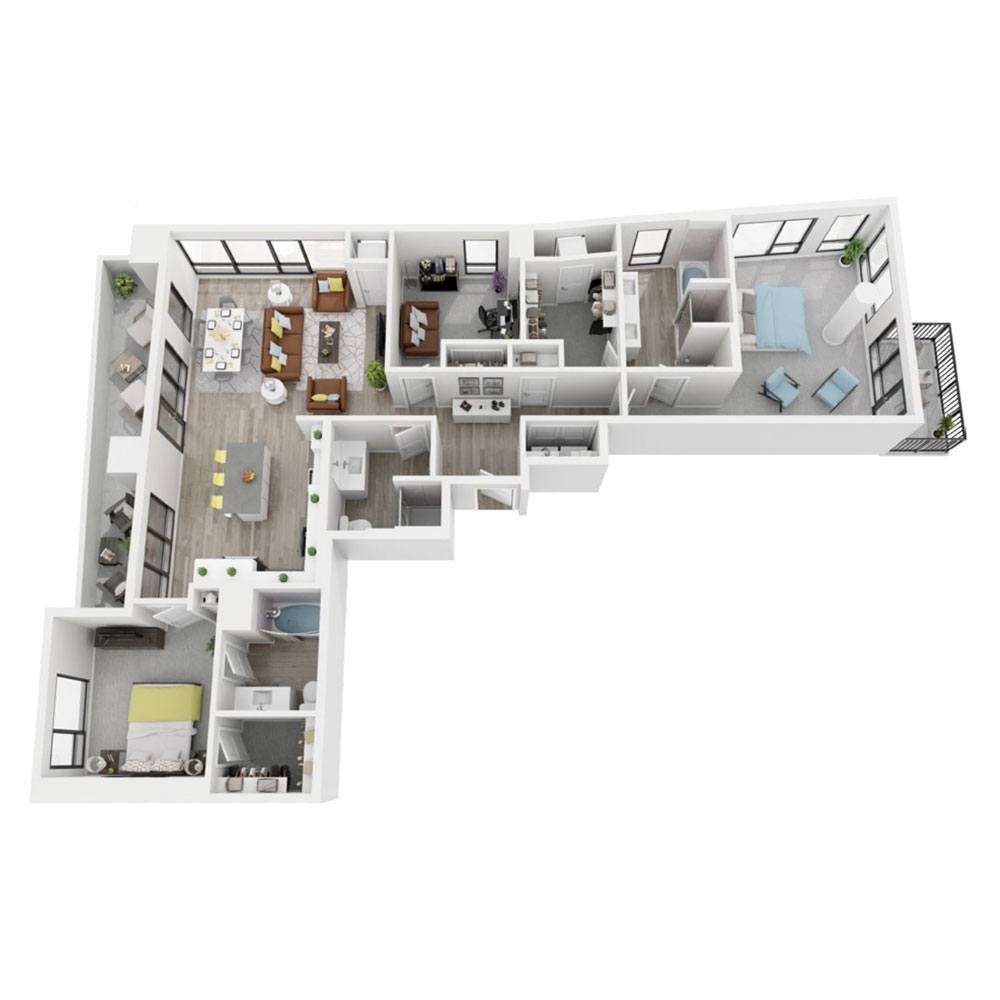 Studio to 3 Bedroom Apartments at HQ Apartments currently range from $1,416 to $3,291