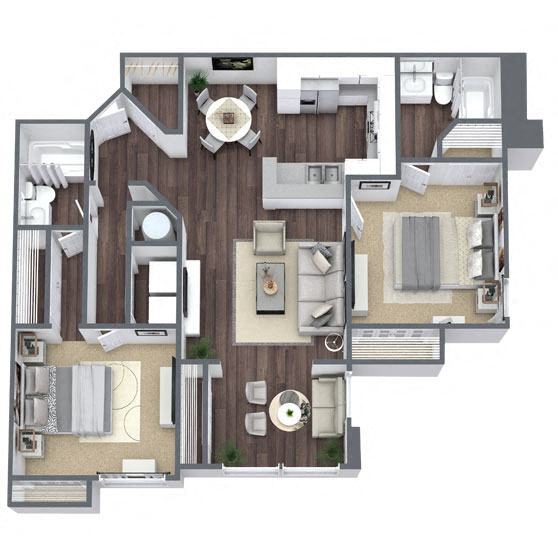 2 Beds, 2 Baths, 846-1074 sq ftModel Gallery