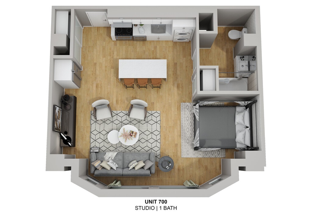 Studio, 1 Bath, 434-647 sq ftAvailable NowModel Gallery
