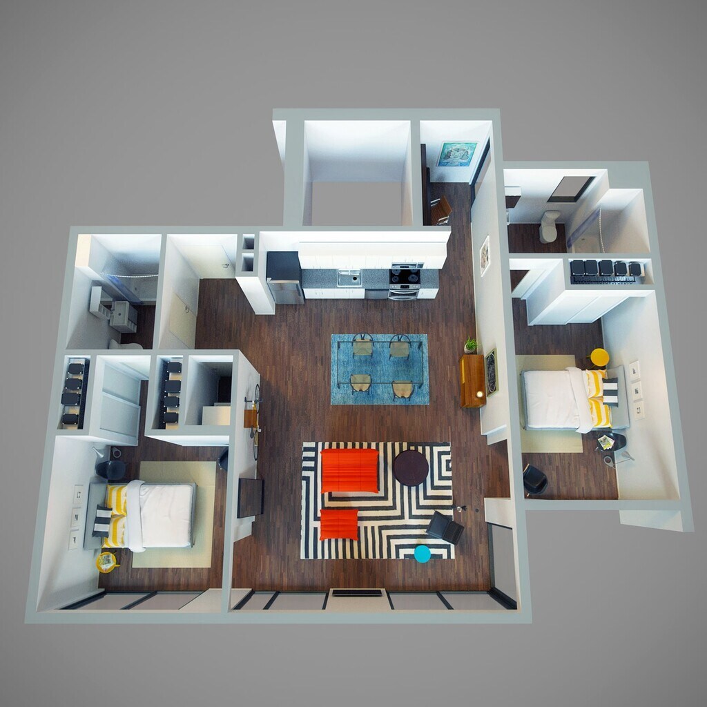 1 Bed, 1 Bath, 737 sq ftModel Gallery