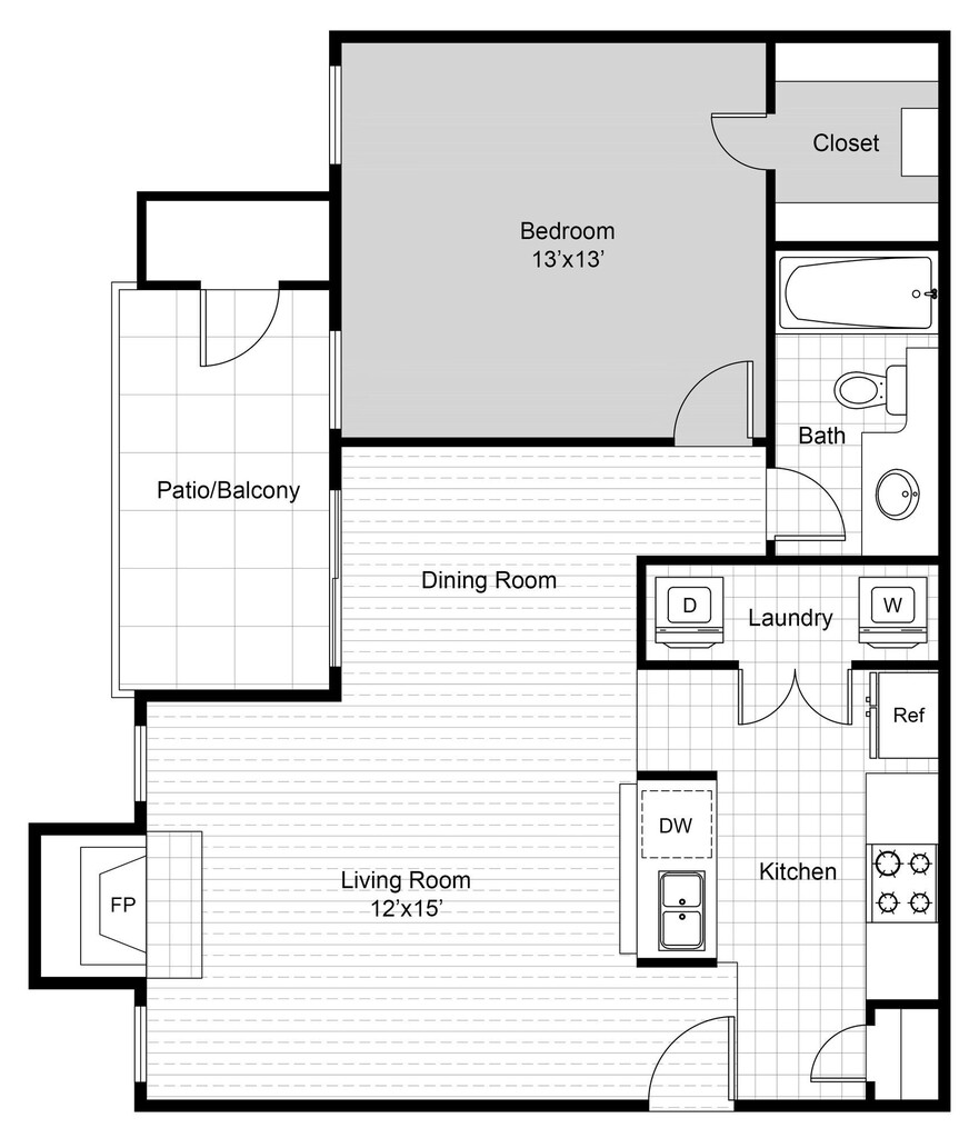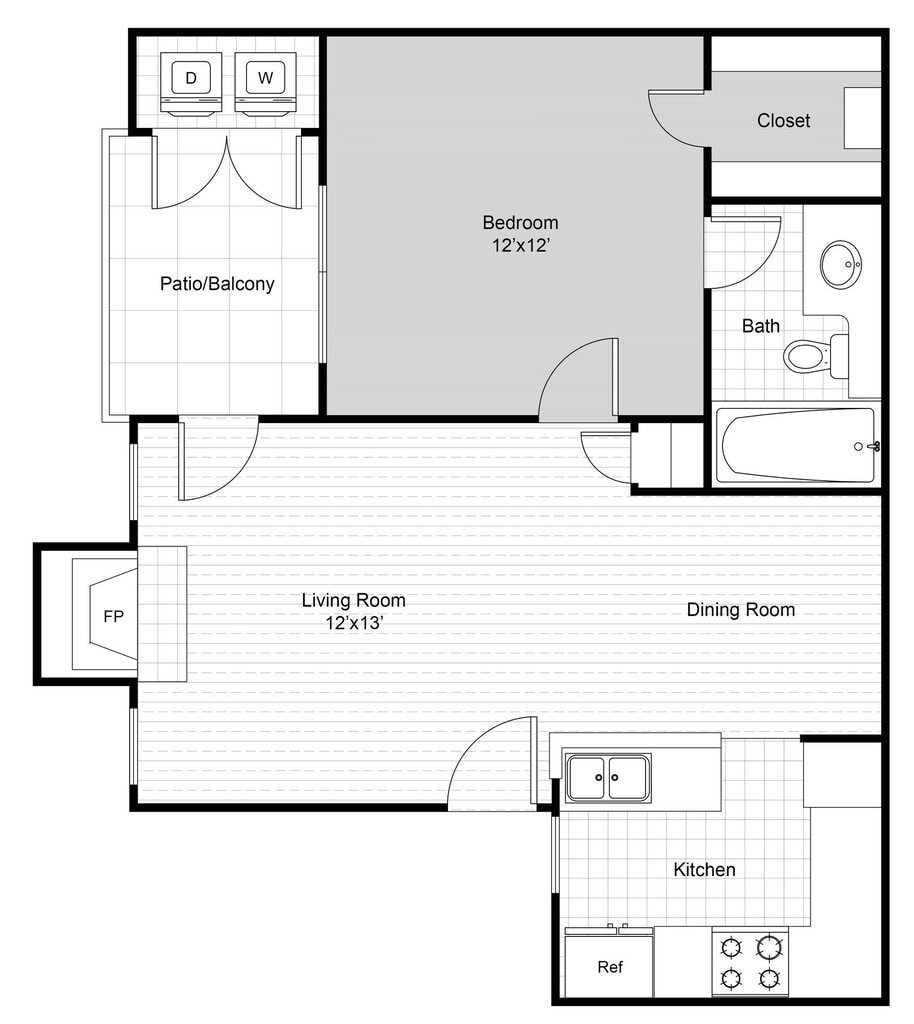 1 Bed, 1 Bath, 810 sq ftAvailable NowLargest 1 BedroomThis is the largest 1 Bedroom at this PropertyModel Gallery